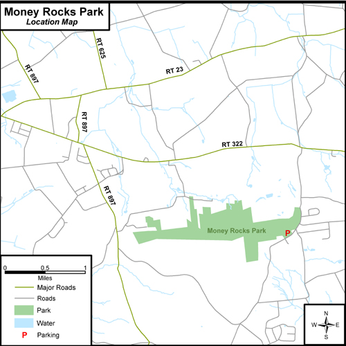 The Welsh Mountains harbor the second-largest continuous forest left in Lancaster County, superseded only by Furnace Hills. Money Rocks County Park preserves a nice part of that forest, which is in various stages of natural plant succession. A network of mining and logging dirt roads makes much of this wooded park accessible to nature lovers.